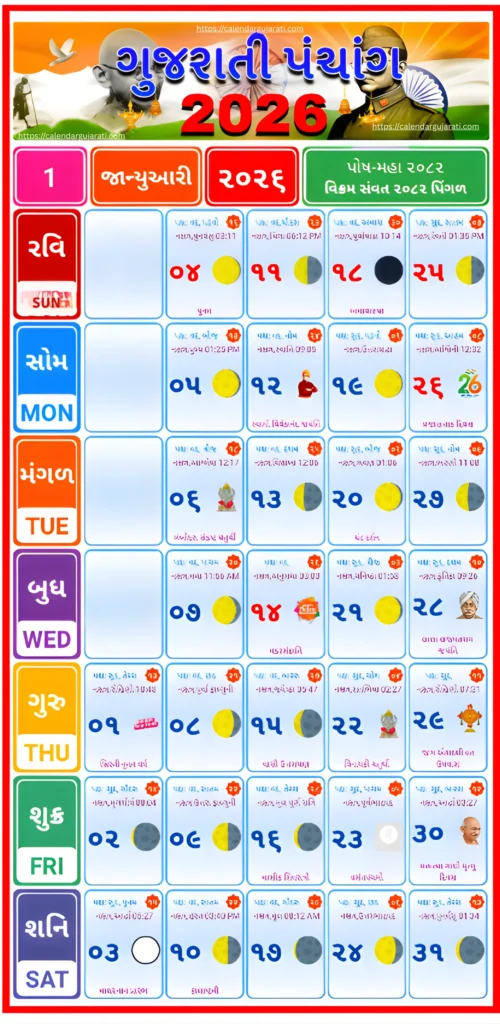 Here is the Gujarati Calendar January 2026 Image and PDF. You can check, read, and also click to Download PDF.